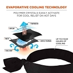 Heat-related illness continuously ranks among the top causes of worksite accidents and fatalities. Evaporative cooling technologies such as polymer crystals are a simple, effective and comfortable solution for heat stress prevention. Similar to how sweat cools the body, evaporative technologies use an external water source to draw heat away—helping to regulate body temperature while providing cool relief. When activated, this cooling head wrap is comfortable and refreshing for even the hottest days of the year.